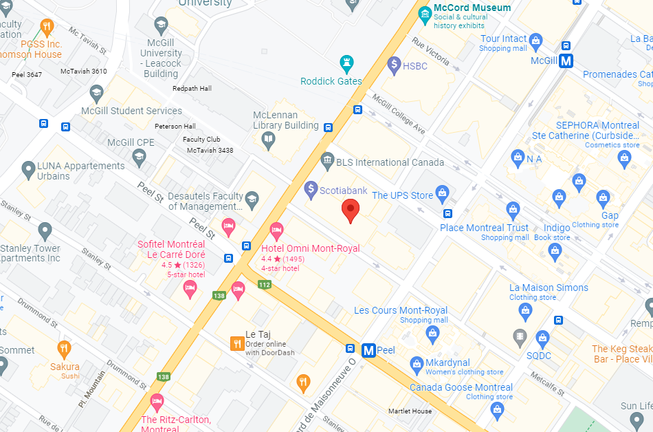 Montreal: 1002 Sherbrooke St W, Unit R-2, Montreal, QC, H3A 3L6, Canada (Google Map)